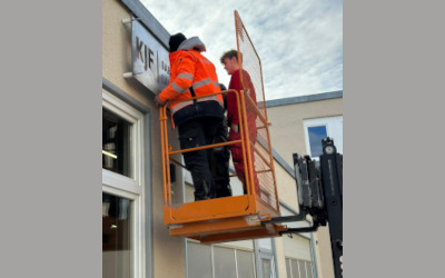 Wir danken den Schülerinnen und Schülern für ihren Einsatz bei dem oft mühsamen und logistisch herausfordernden Umbau – und freuen uns über den erfolgreichen Abschluss mit der symbolischen Montage des Schildes. Ganz nach unserem Jahresmotto: Die Zeit wurde gut genutzt. Wir haben für unsere Zukunft gebaut.