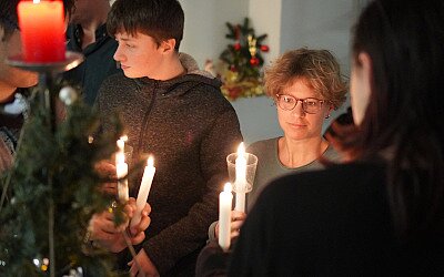 Dreimal in der Adventszeit versammeln sich die Schülerinnen und Schüler jeden Donnerstag in der festlich geschmückten Aula zum gemeinsamen Singen. In der stimmungsvollen Zeit erklingen bekannte Weihnachtslieder und es werden weihnachtliche Geschichten vorgetragen, die eine wärmende, verbindende Atmosphäre schaffen.